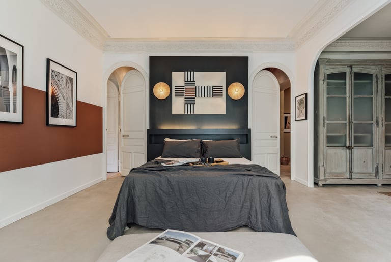 This project allowed us to merge diverse design influences while respecting the apartment’s historic character, resulting in a space that feels both curated and welcoming.